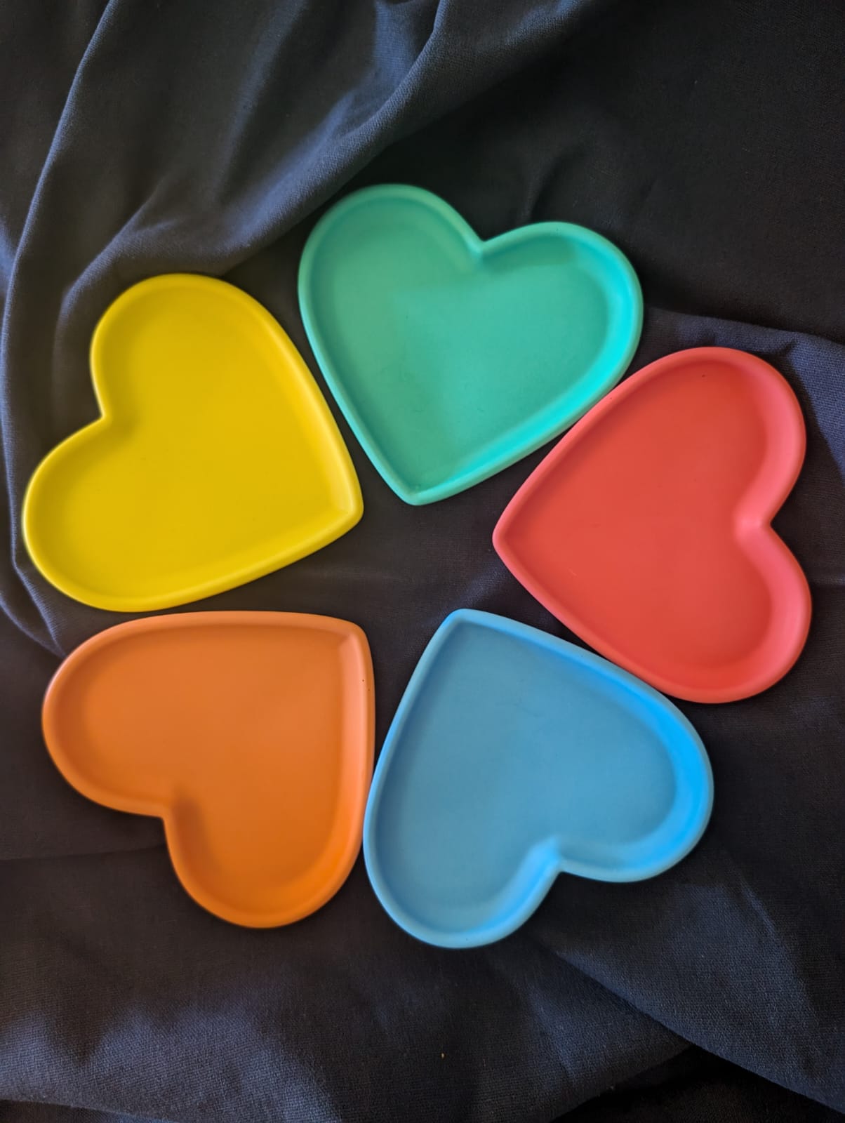 Fall in love with colour. These vibrant heart-shaped jewelry dishes are where charm meets chic—perfect for storing your rings, studs, or tiny keepsakes. Each piece is a playful pop of joy, crafted to brighten your day and your décor. Mix, match, or gift a heart full of style.
